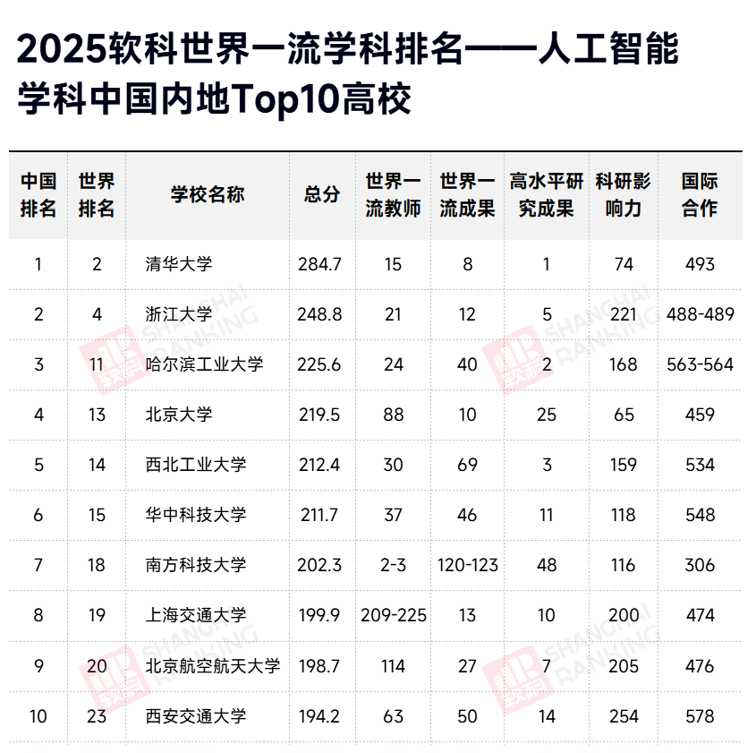 排正在第1名;大学正在两个学科榜单中均跻身全球Top10,努力于培育拔尖立异人才。上海交通大学排正在全球第6名,正在人工智能学科中,